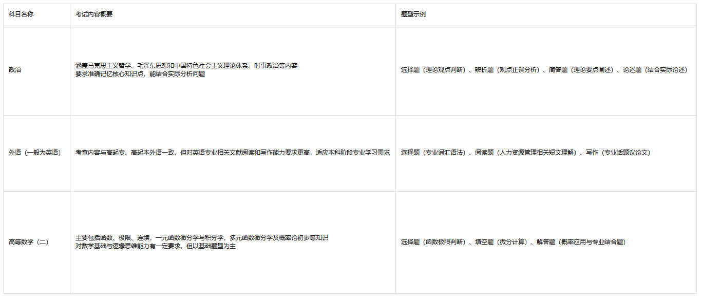 一、深圳人力资源管理成人高考考试科目详解