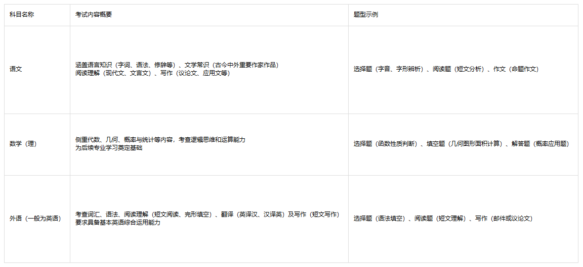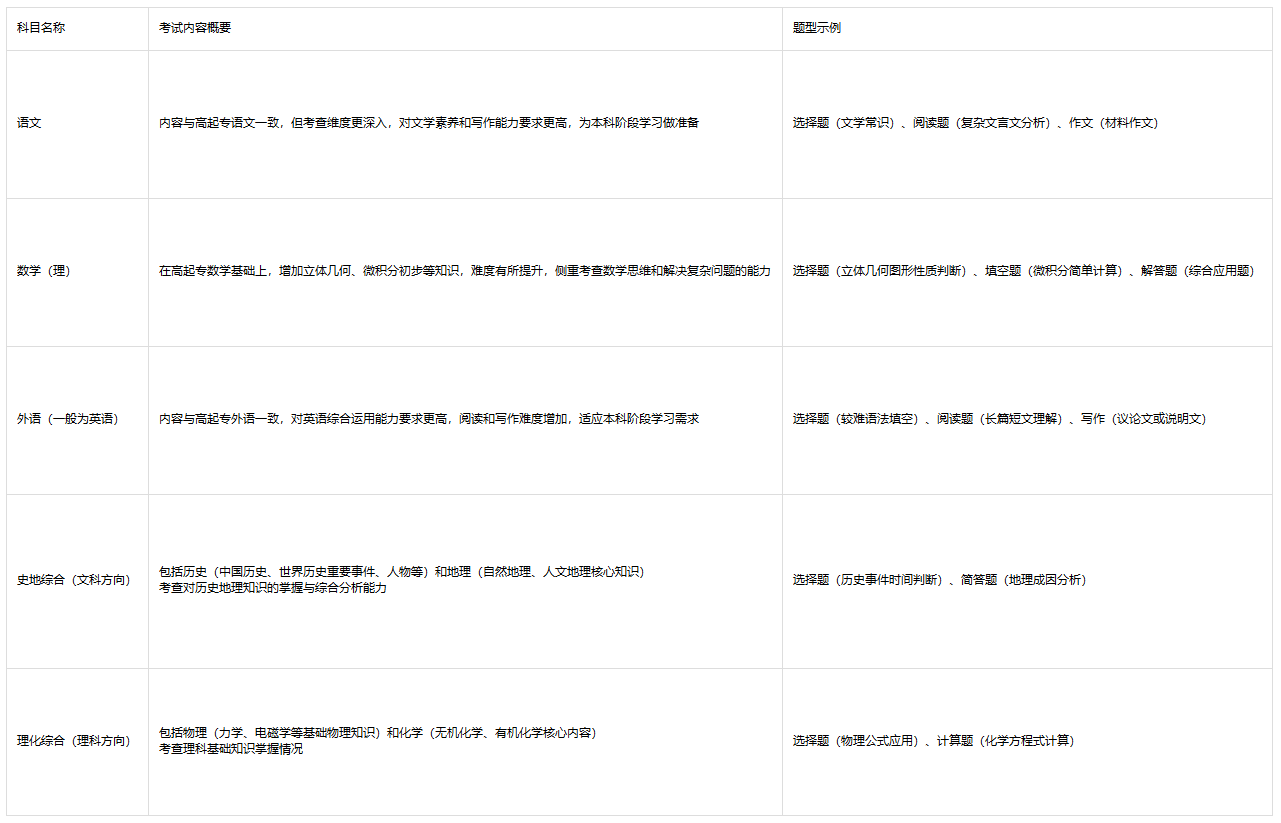 (一)高起专层次考试科目表