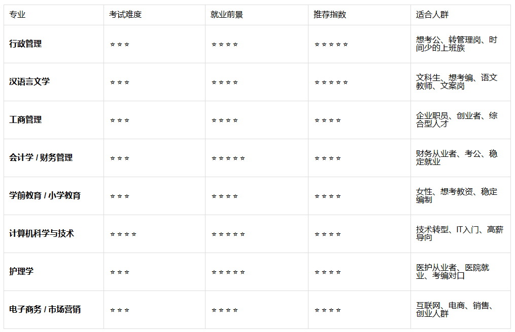 广东成人本科哪些专业容易考、好就业?在广东,越来越多职场人士通过成人本科(包括成人高考、自考、开放教育等形式)提升学历,以增强职业竞争力、考公考编、转行或升职加薪。选择一个既容易通过又就业前景广阔的专业,是成功的关键。结合2026年广东成人教育趋势、就业市场需求及考试难度,以下是为你精心整理的“易考+好就业”双优专业推荐: