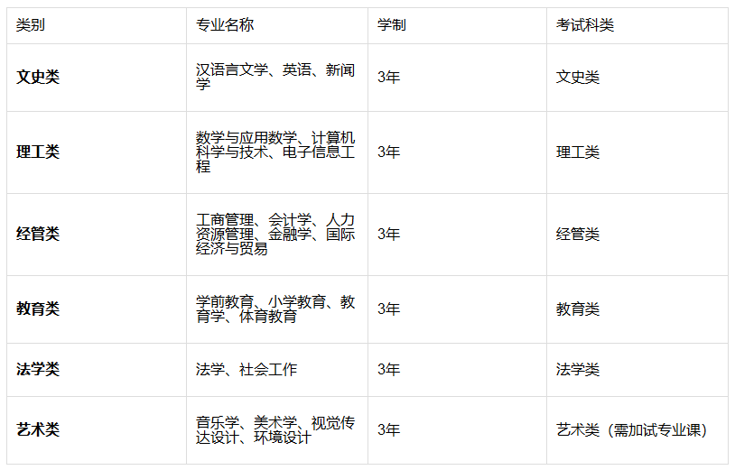 招生专业(专升本):